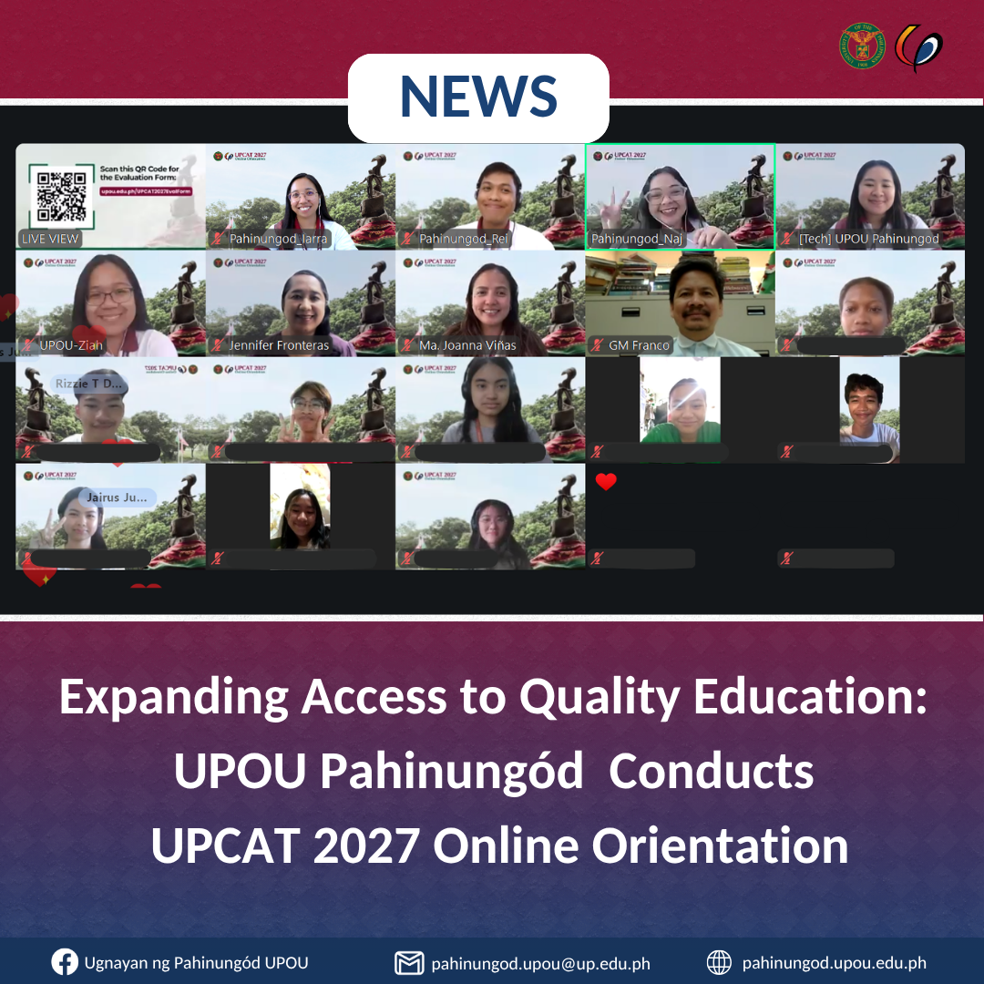 Expanding Access to Quality Education: Ugnayan ng Pahinungód UPOU Conducts UPCAT 2027 Online Orientationsuperadmin2026-03-26T09:25:13+08:00